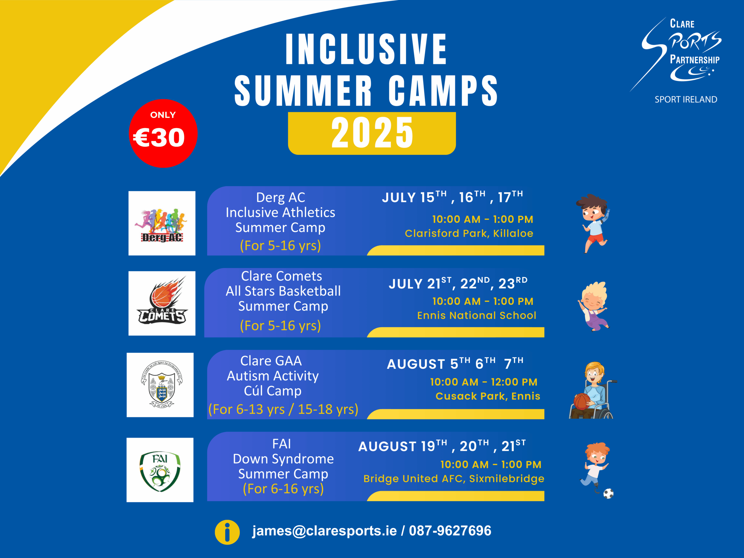 See a full list of Inclusive camps taking place this Summer in Clare below: